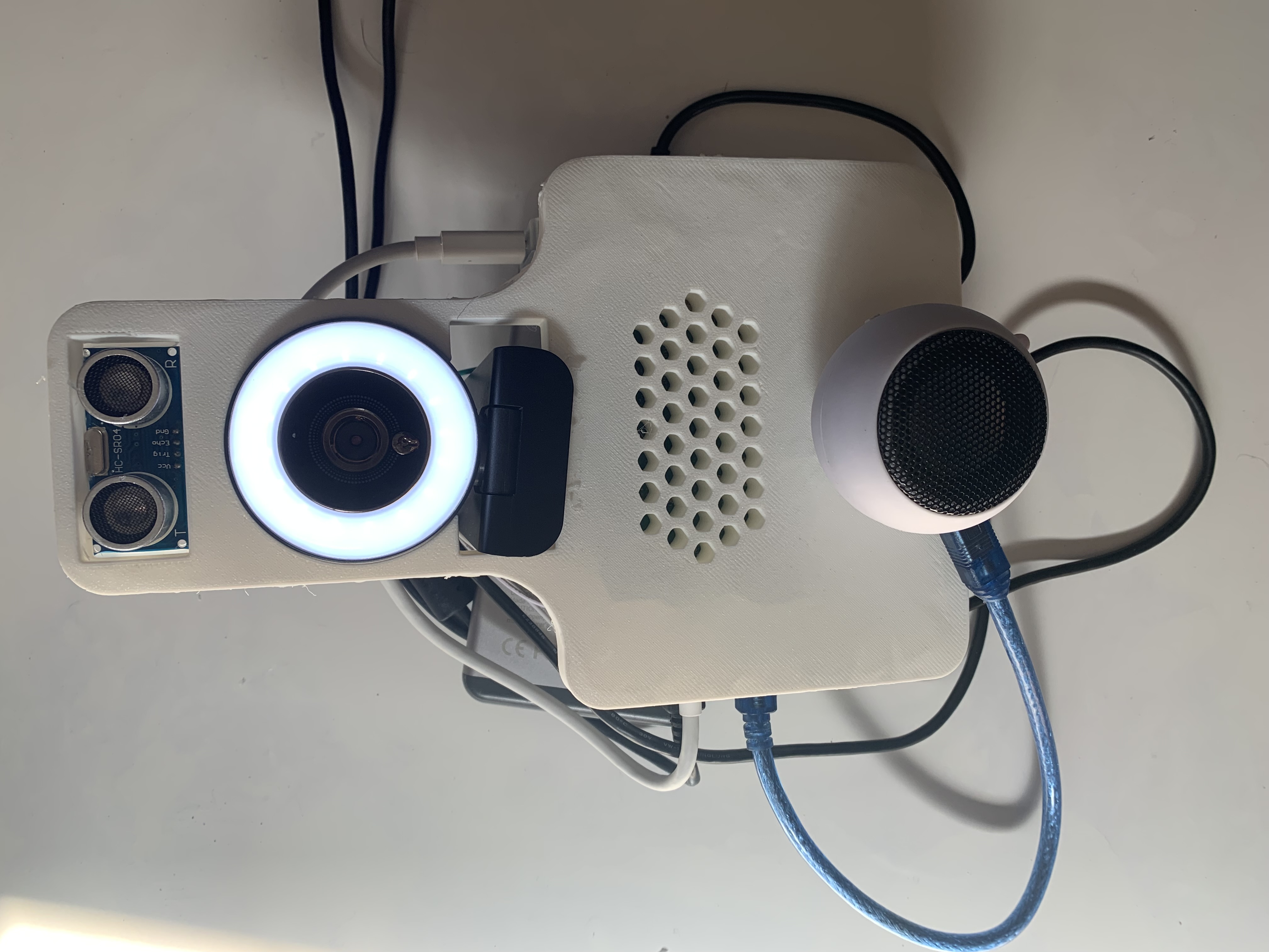 Our device uses an AI model to detect common household objects and then says them out loud for the visually impaired to hear. It also speaks the location, distance between the gadget and the object so that the visually impaired know how far away everything is. This can make it possible for them to be more safe when navigating around the house, neighborhood, and public places. The whole gadget utilizes a portable 3D printed case, which makes it easy to hold and use.